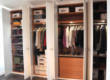 Si el tuyo es un armario modular de dos barras, un truco para ganar espacio es añadir una tabla en la zona media y un módulo de cajones en la parte inferior. De ese modo se consigue mayor espacio de almacenamiento.
