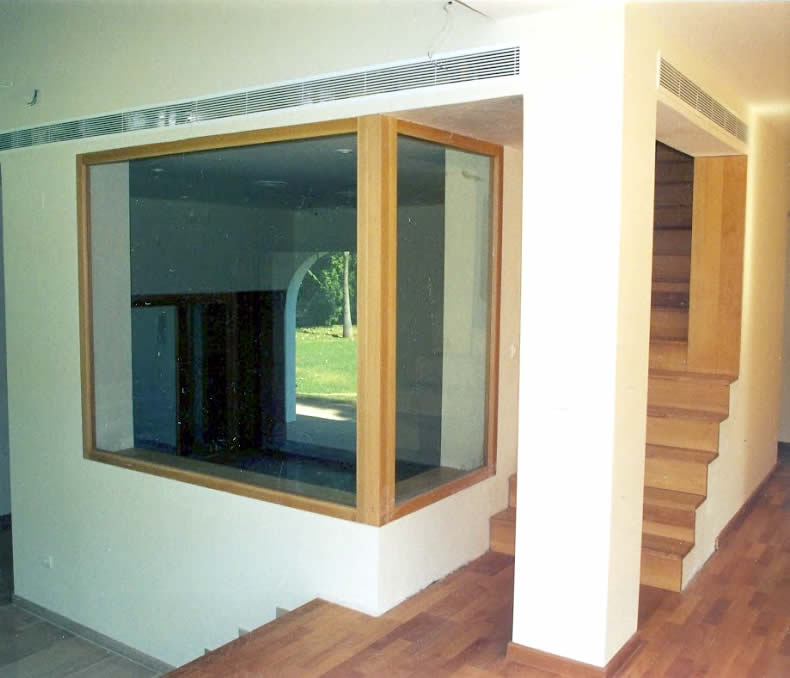 mampara de madera con cristal